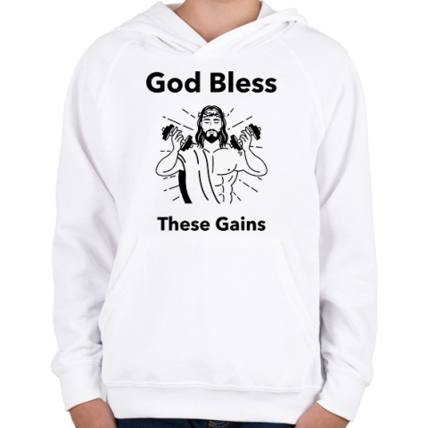 1 kép PRINTFASHION Isten áldott izmai - Gyerek kapucnis pulóver - Fehér