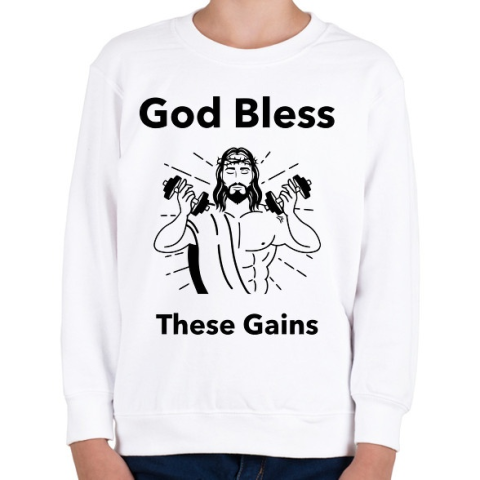 1 kép PRINTFASHION Isten áldott izmai - Gyerek pulóver - Fehér
