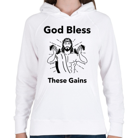 1 kép PRINTFASHION Isten áldott izmai - Női kapucnis pulóver - Fehér