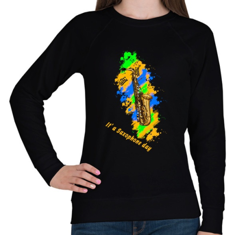 1 kép PRINTFASHION it's a saxophone day - Női pulóver - Fekete