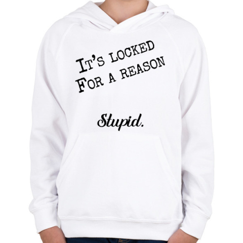 1 kép PRINTFASHION It's locked for a reason - Telefontok - Gyerek kapucnis pulóver - Fehér
