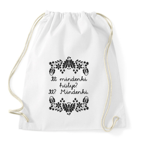 1 kép PRINTFASHION Itt mindenki hülye? Itt? Mindenki. - Sportzsák, Tornazsák - Fehér