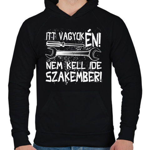 1 kép PRINTFASHION itt vagyok én nem kell ide szakember fehér - Férfi kapucnis pulóver - Fekete