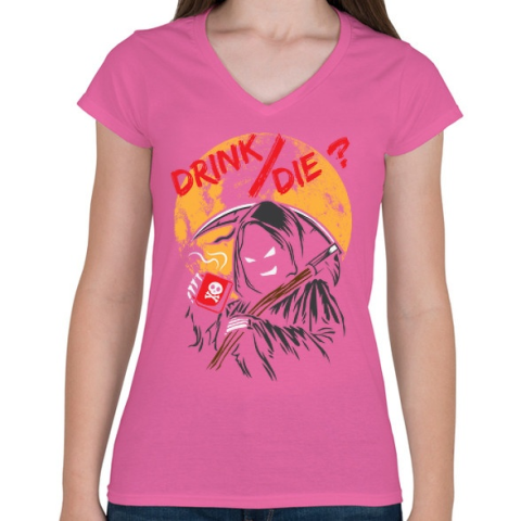 1 kép PRINTFASHION Ivás/halál ? - Női V-nyakú póló - Rózsaszín