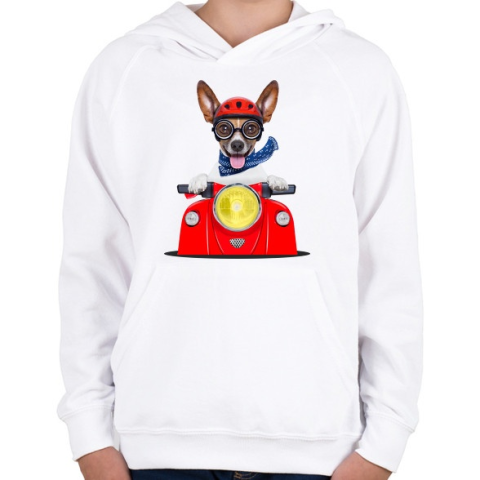 1 kép PRINTFASHION Jack Russel motorozik - Gyerek kapucnis pulóver - Fehér