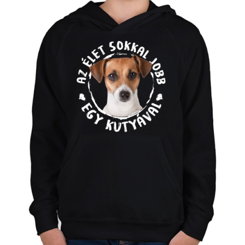 1 kép PRINTFASHION Jack Russel Terrier - Gyerek kapucnis pulóver - Fekete