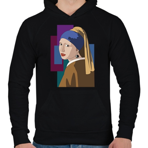1 kép PRINTFASHION Jan Vermeer - Leány gyöngy fülbevalóval - Férfi kapucnis pulóver - Fekete