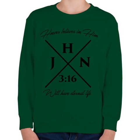 1 kép PRINTFASHION János 3:16 - Gyerek pulóver - Sötétzöld