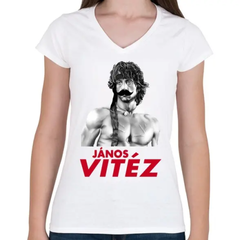 1 kép PRINTFASHION János Vitéz - Női V-nyakú póló - Fehér