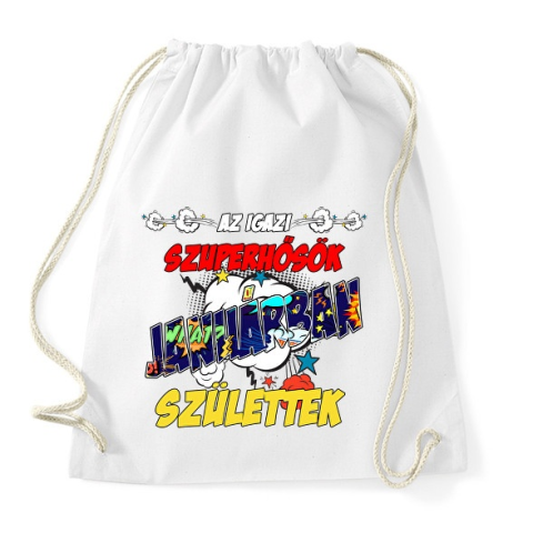1 kép PRINTFASHION Januári szuperhős - Sportzsák, Tornazsák - Fehér