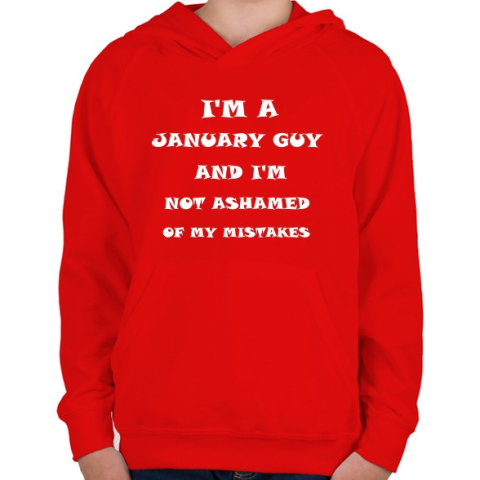 1 kép PRINTFASHION Januári vagyok és nem szégyellem a hibáimat - Gyerek kapucnis pulóver - Piros