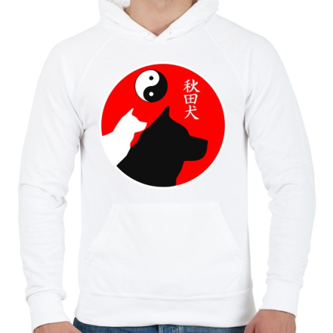 1 kép PRINTFASHION Japán Akita - Férfi kapucnis pulóver - Fehér
