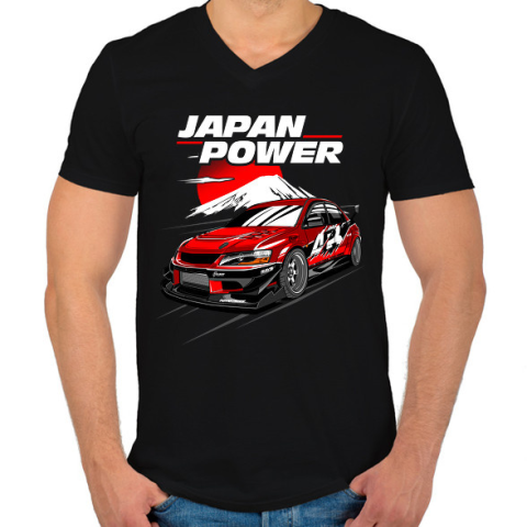 1 kép PRINTFASHION Japan Power Racing - Férfi V-nyakú póló - Fekete
