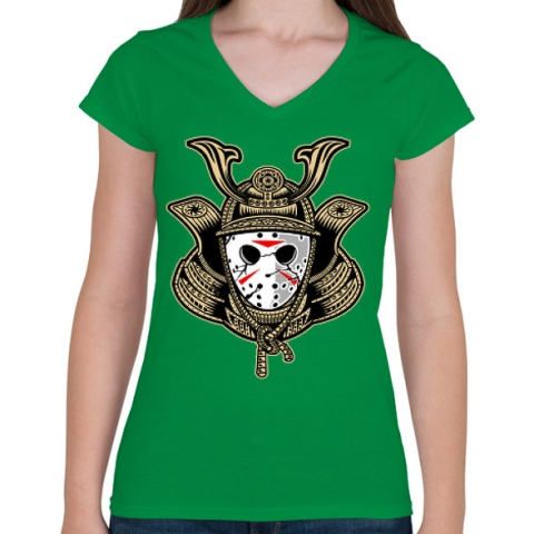 1 kép PRINTFASHION Jason a szamuráj - Női V-nyakú póló - Zöld