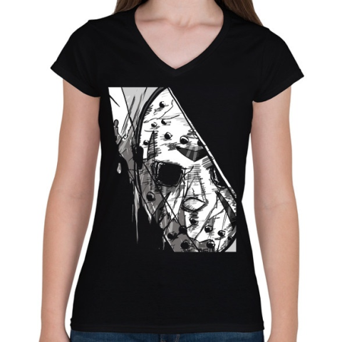 1 kép PRINTFASHION Jason Voorhees 3 - Női V-nyakú póló - Fekete