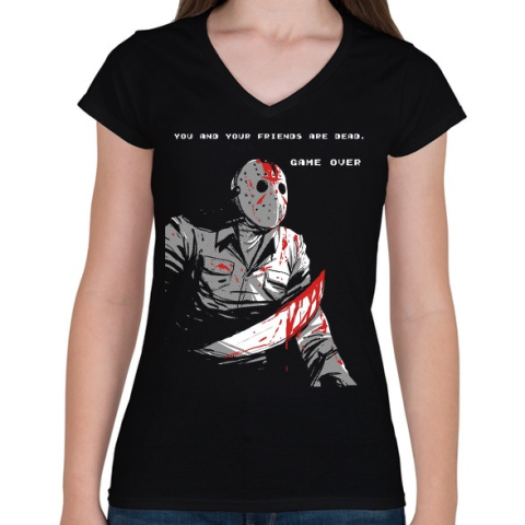 1 kép PRINTFASHION Jason Voorhees - Női V-nyakú póló - Fekete