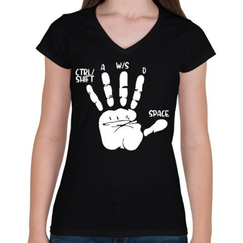 1 kép PRINTFASHION Játékos kéz - Női V-nyakú póló - Fekete