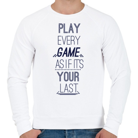 1 kép PRINTFASHION Játssz úgy, mintha az utolsó lenne - Férfi pulóver - Fehér