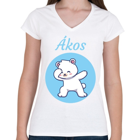 1 kép PRINTFASHION Jegesmaci névvel - Női V-nyakú póló - Fehér
