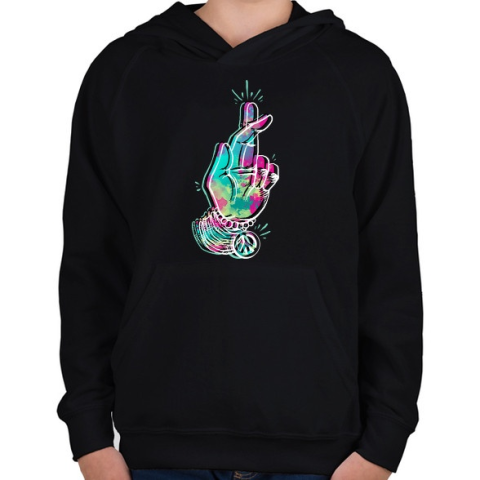 1 kép PRINTFASHION Jelzés - Gyerek kapucnis pulóver - Fekete