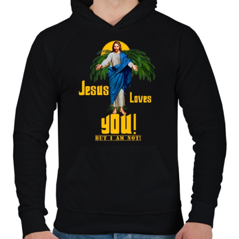 1 kép PRINTFASHION jesus loves you but im not - Férfi kapucnis pulóver - Fekete