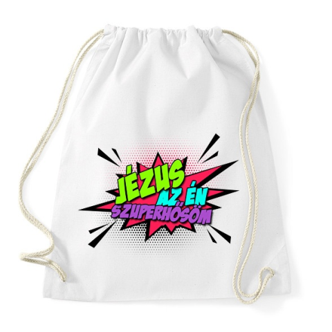1 kép PRINTFASHION Jézus az én Szuperhősöm! - Sportzsák, Tornazsák - Fehér