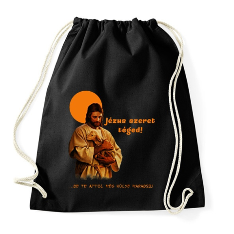 1 kép PRINTFASHION JÉZUS SZERET TÉGED - Sportzsák, Tornazsák - Fekete