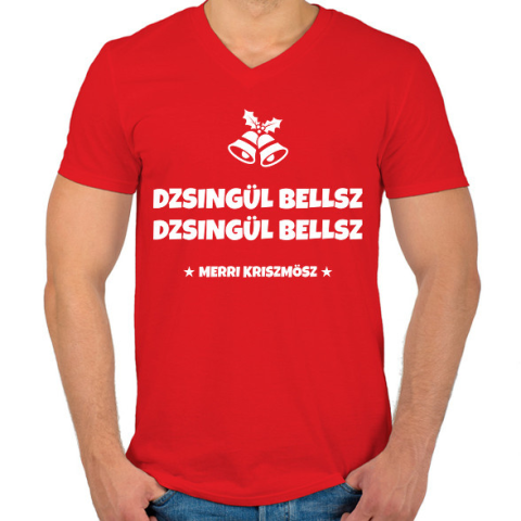 1 kép PRINTFASHION JINGLE BELLS - Férfi V-nyakú póló - Piros