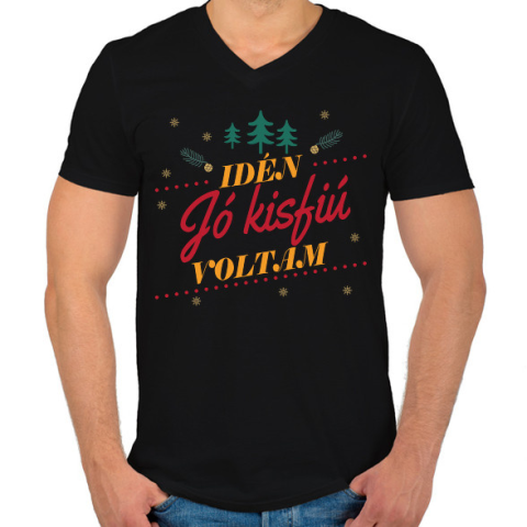 1 kép PRINTFASHION Jó kisfiú - Férfi V-nyakú póló - Fekete