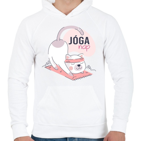 1 kép PRINTFASHION Jóga nap - Férfi kapucnis pulóver - Fehér