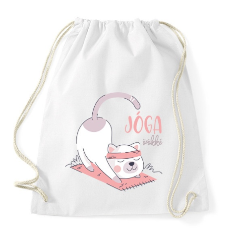 1 kép PRINTFASHION Jóga örökké - Cicás - Sportzsák, Tornazsák - Fehér