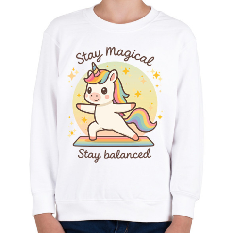 1 kép PRINTFASHION Jógázó unikornis - Gyerek pulóver - Fehér