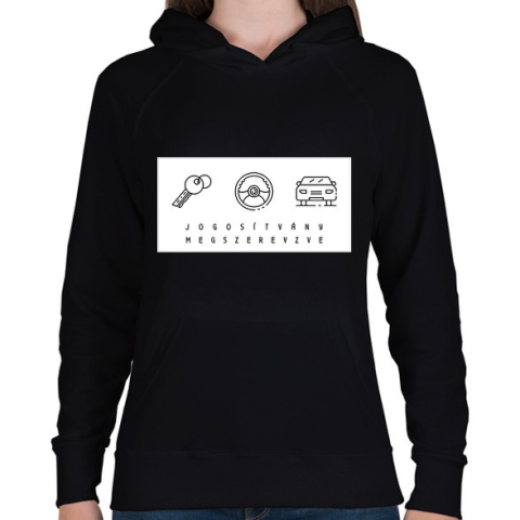 1 kép PRINTFASHION Jogosítvány megszerezve - Női kapucnis pulóver - Fekete