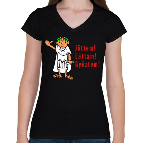 1 kép PRINTFASHION jöttem láttam győztem - Női V-nyakú póló - Fekete