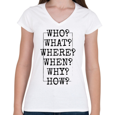 1 kép PRINTFASHION Journalist's questions - Női V-nyakú póló - Fehér