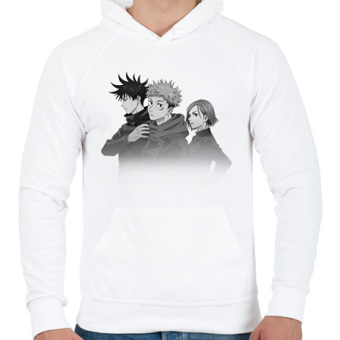 1 kép PRINTFASHION Jujutsu Trio (1) - Férfi kapucnis pulóver - Fehér