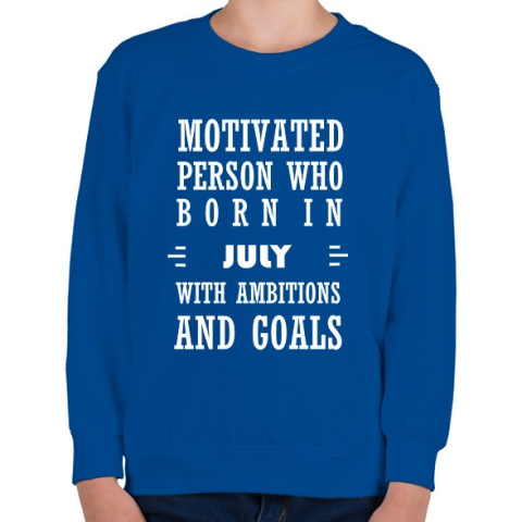 1 kép PRINTFASHION Júliusi születésű motivált személy ambíciókkal és célokkal - Gyerek pulóver - Királykék