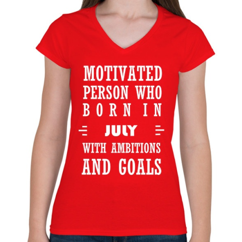 1 kép PRINTFASHION Júliusi születésű motivált személy ambíciókkal és célokkal - Női V-nyakú póló - Piros