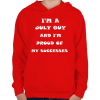 1 kép PRINTFASHION Júliusi vagyok és büszke vagyok a sikereimre - Gyerek kapucnis pulóver - Piros