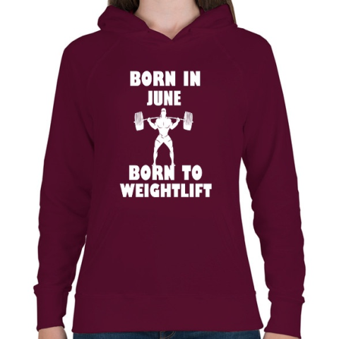 1 kép PRINTFASHION Júniusban születve - súlyemelésre születve - Női kapucnis pulóver - Bordó