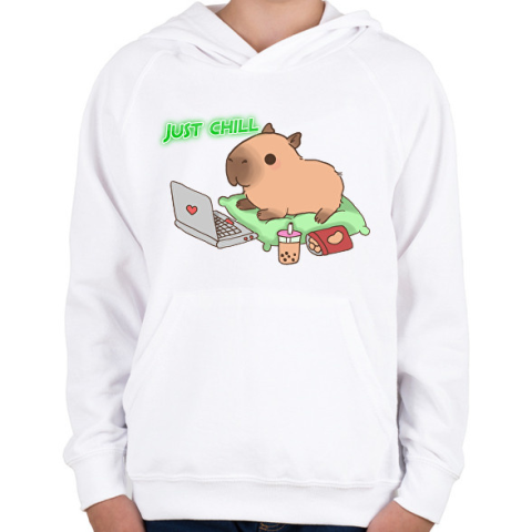 1 kép PRINTFASHION Just chill - Capybara - Gyerek kapucnis pulóver - Fehér