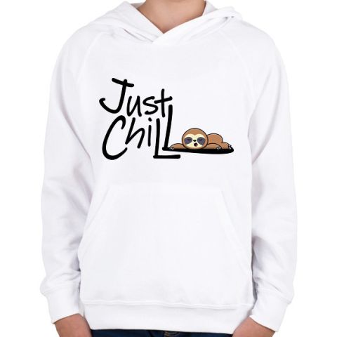 1 kép PRINTFASHION Just Chill Lajhár - Gyerek kapucnis pulóver - Fehér
