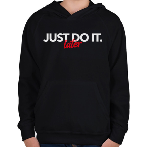 1 kép PRINTFASHION JUST DO IT LATER - Gyerek kapucnis pulóver - Fekete