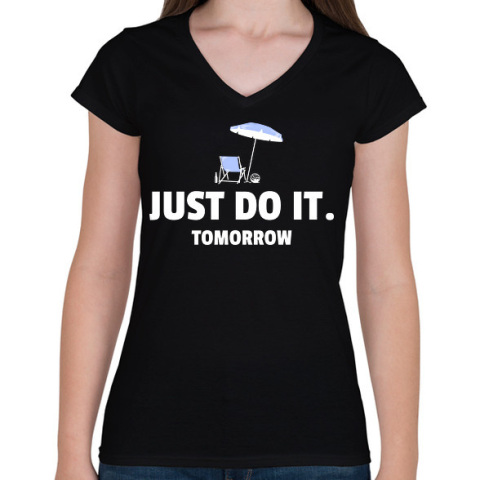 1 kép PRINTFASHION JUST DO IT TOMORROW 2 - Női V-nyakú póló - Fekete
