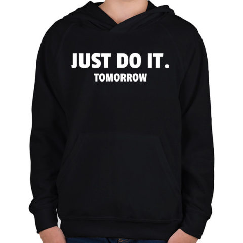 1 kép PRINTFASHION JUST DO IT TOMORROW - Gyerek kapucnis pulóver - Fekete