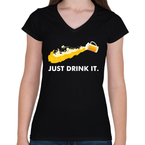 1 kép PRINTFASHION Just drink it - sör - Női V-nyakú póló - Fekete