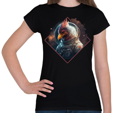 1 kép PRINTFASHION Kakas az űrben - Női póló - Fekete