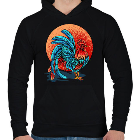 1 kép PRINTFASHION Kakas - Férfi kapucnis pulóver - Fekete