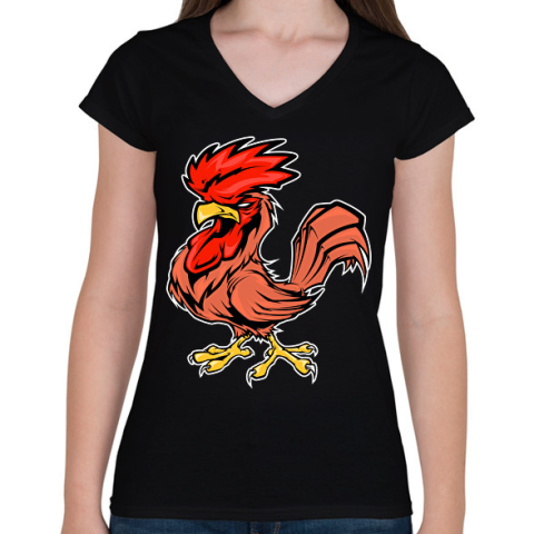 1 kép PRINTFASHION Kakas - Női V-nyakú póló - Fekete