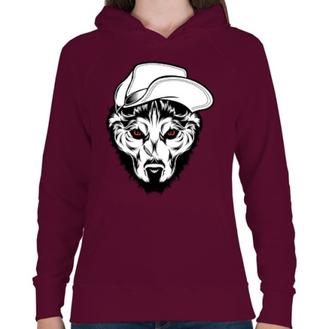 1 kép PRINTFASHION Kalapos farkas - Női kapucnis pulóver - Bordó